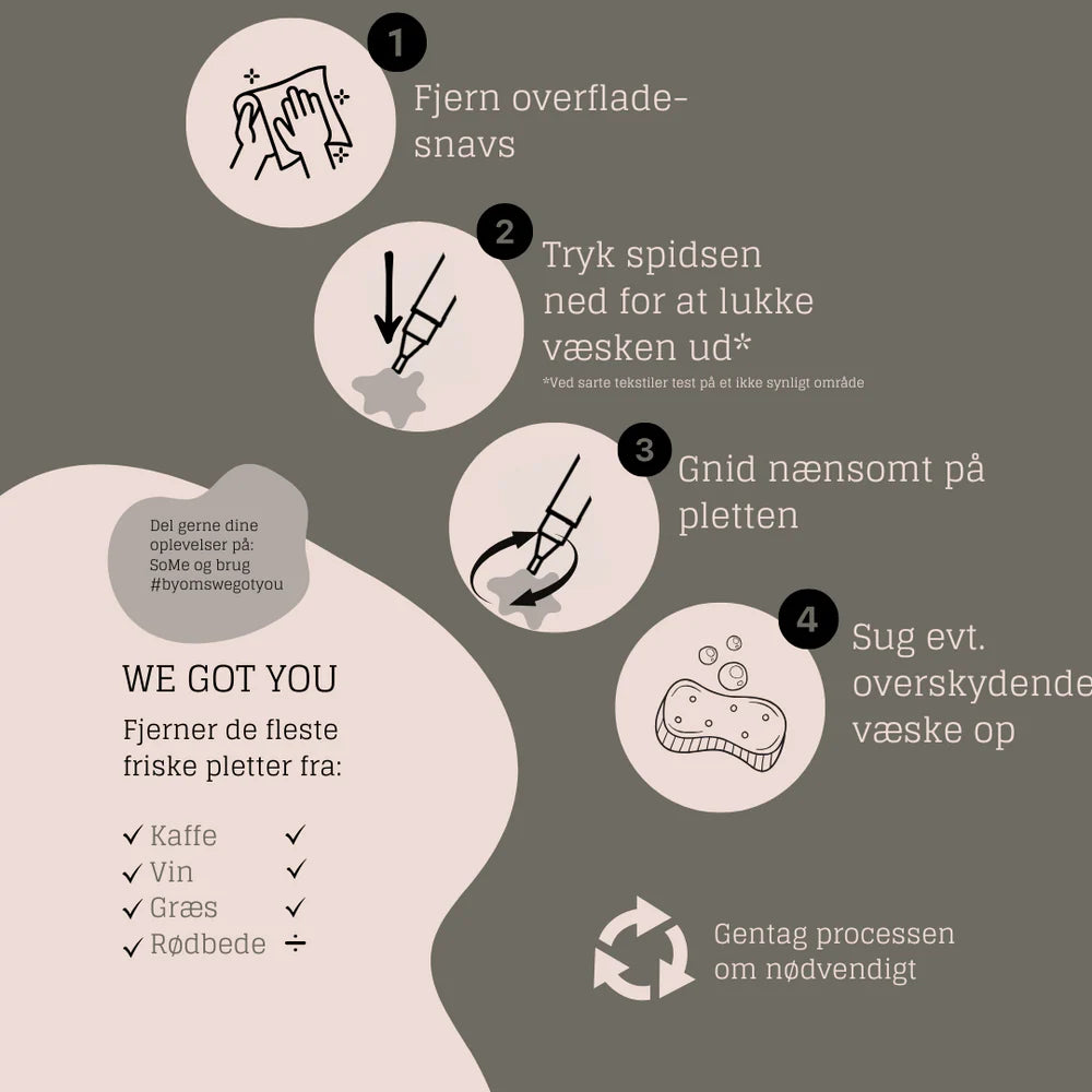 Ved større og/eller genstridige pletter, forstærk virkningen ved brug af We Got You - forbehandling.