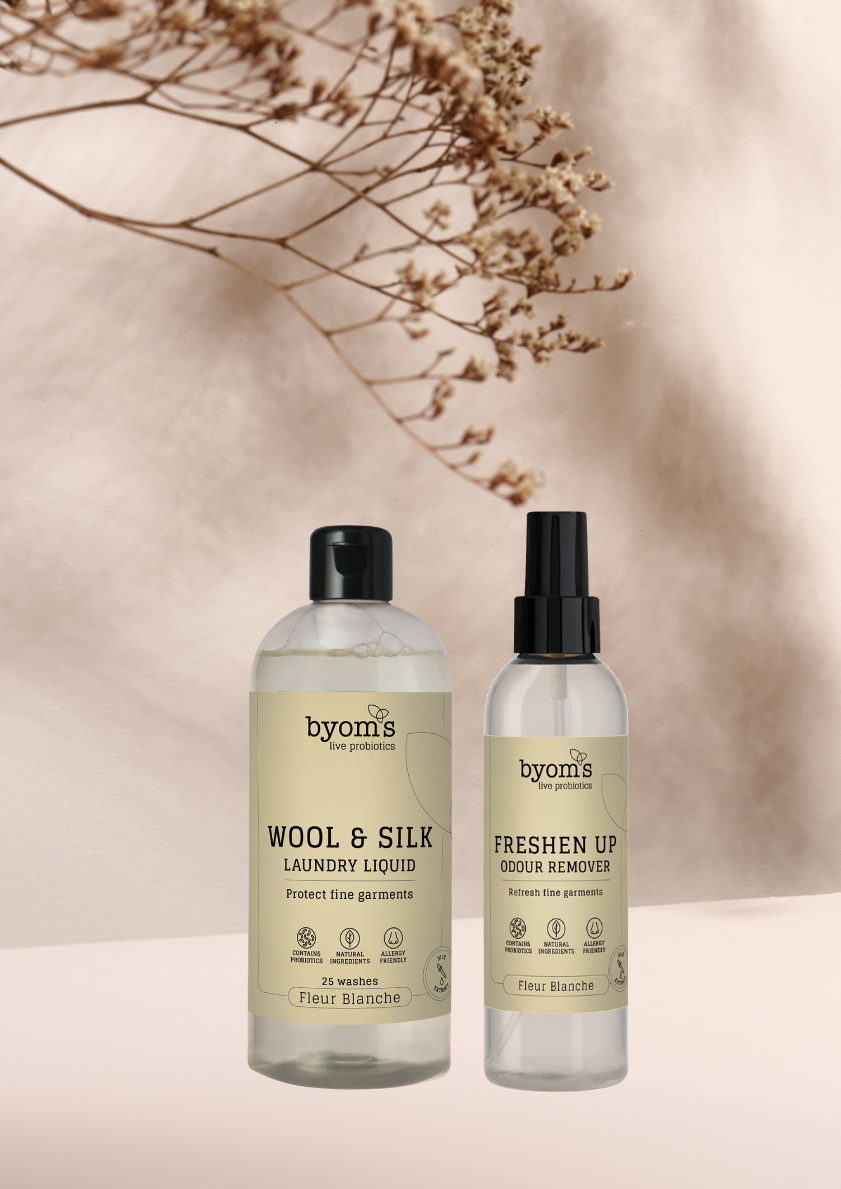 Giv dit delikate tøj den kærlighed, det fortjener, med WOOL & SILK. Det er dit bedste valg for skånsom pleje, naturlig rensning og en frisk duft i både dit tøj og vaskemaskine. Vælg byoms, når du ønsker det bedste for dit tøj og vores fremtid.