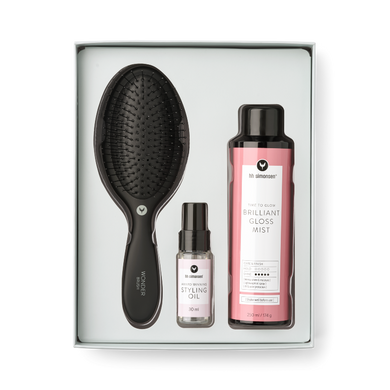 HH Simonsen - Time to Glow: 1 stk. Wonder Brush Black + 1 stk. Brilliant Gloss Mist 250ml + 1 stk. Styling Oil 30ml - Gift Box AW25 - NÝTT !!!