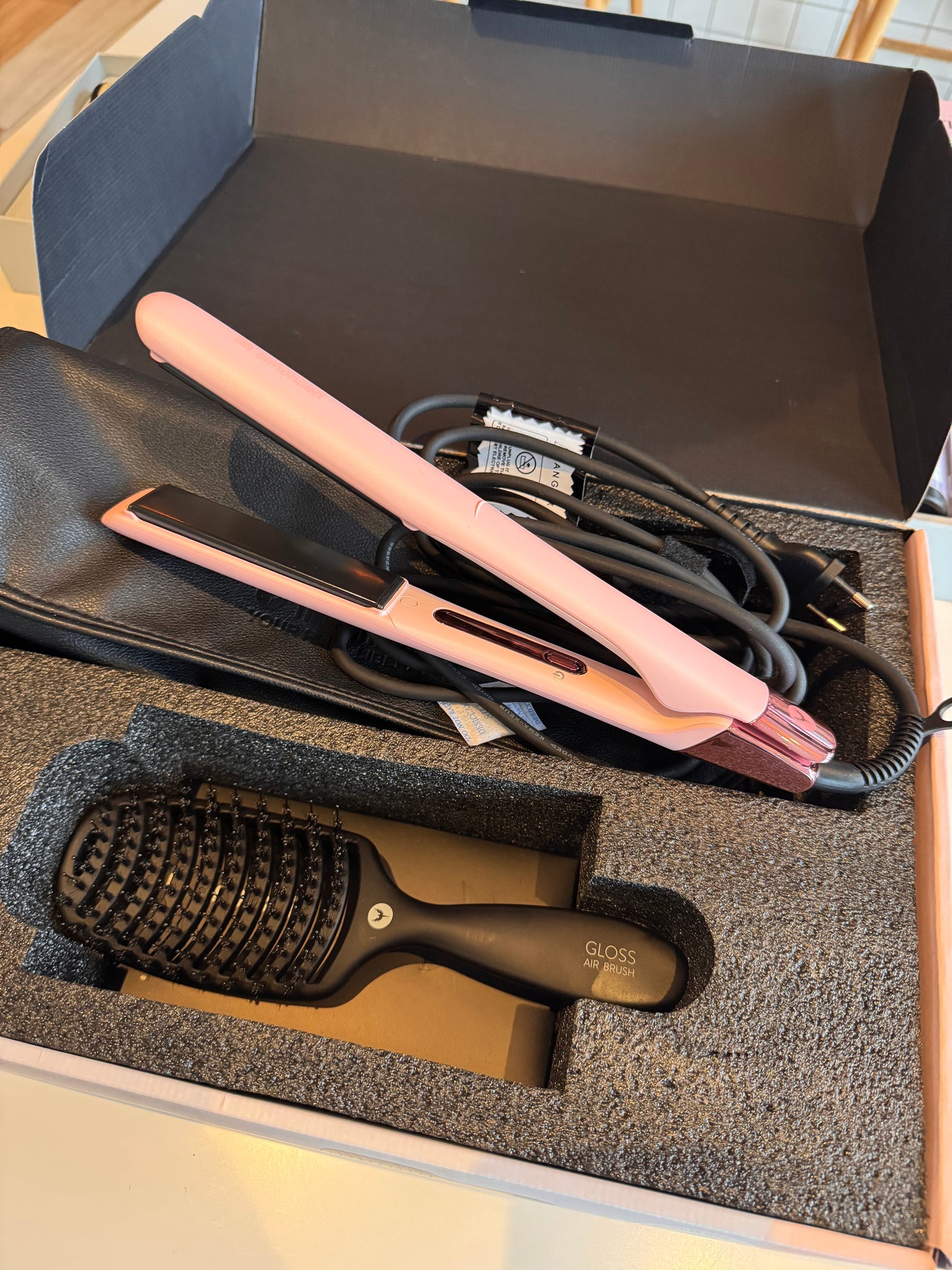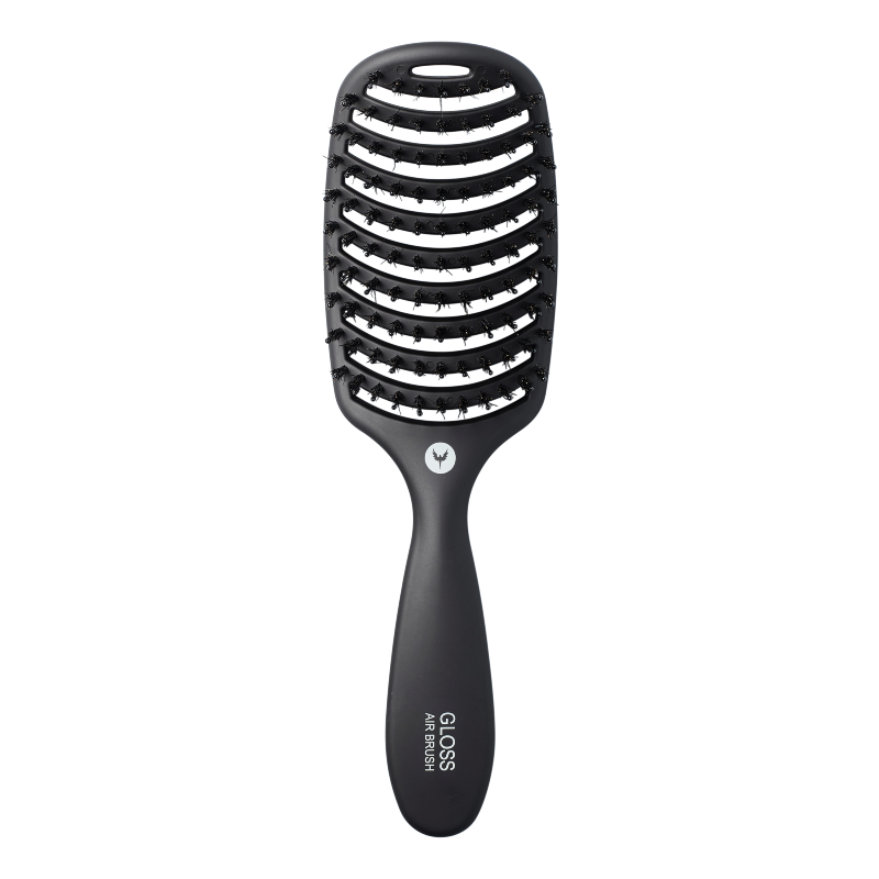 Gloss Air Brush har en kombination af ægte vildsvinehår og fleksible børstepigge. Det åbne design, giver optimal luftgennemstrømning og de varmebestandige børstepigge tåler op til 160 grader. Børsten er formet efter hovedbunden, så større sektioner af håret løftes.