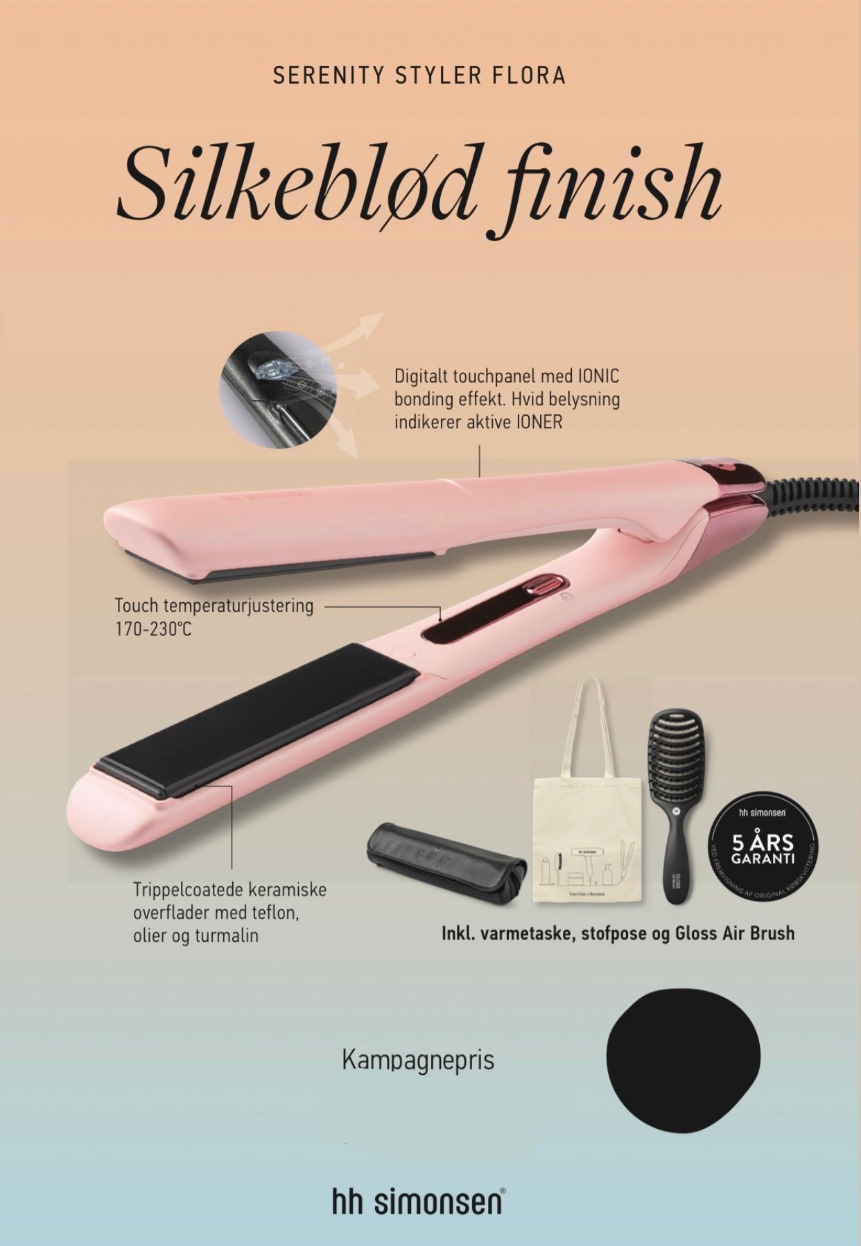 HH Simonsen - Serenity Styler - Flora/pink - inkl. Gloss Air Brush + luksuriøs varmetaske og stofpose - SS26 (virði kr. 1.699,90) - JÚST KOMIÐ